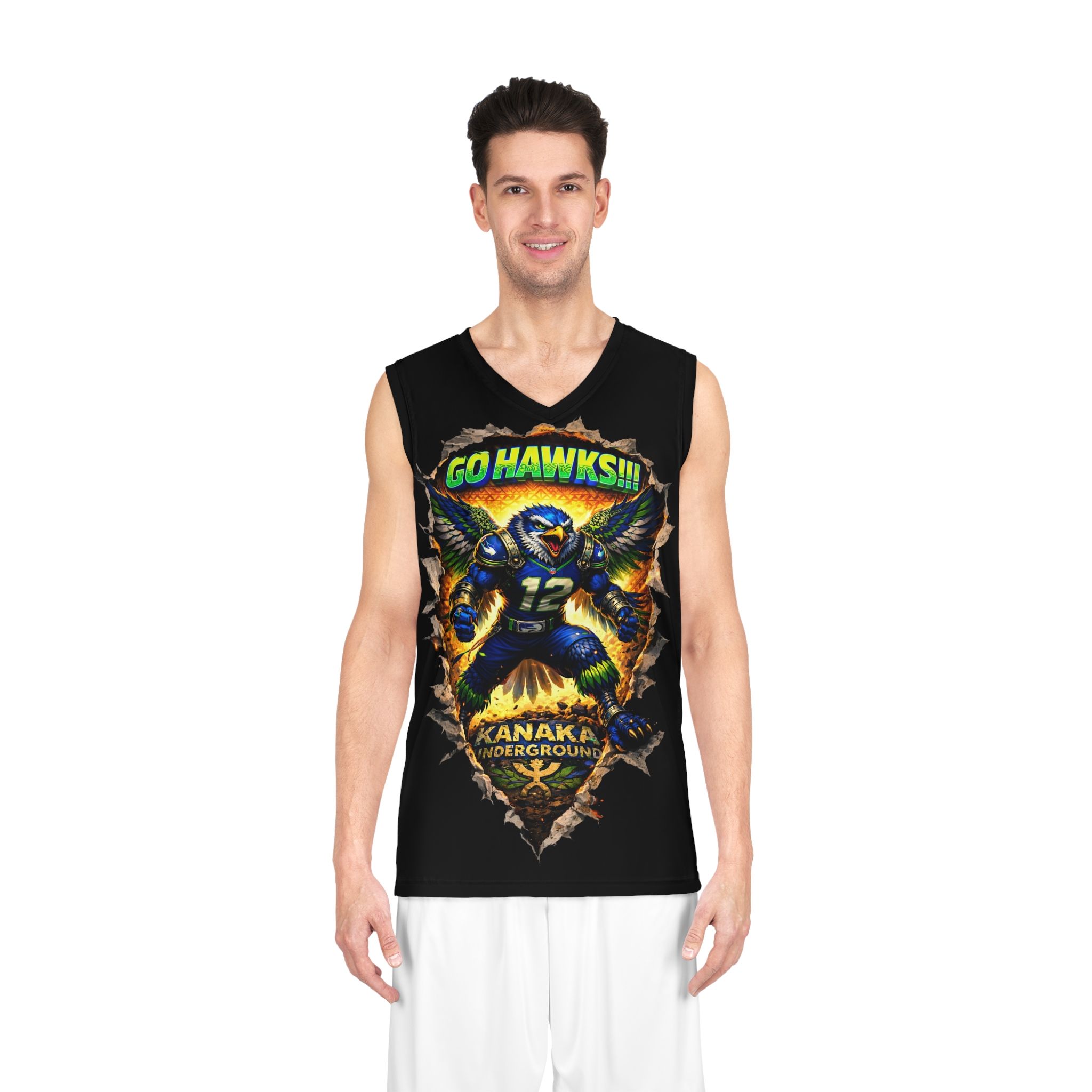 Light, loud, and built to move — this basketball jersey channels the energy of the court into a bold all-over print. A fierce hawk charges forward from a torn-edge graphic, bright neon accents popping against deep black fabric. Breathable, ultra-light polyester keeps skin cool while the moisture-wicking finish and odor resistance stand up to long practices, pickup games, and sun-soaked weekends. Double-stitched seams and side panels keep the shape through rough play and repeated washes. Wear it to show team pride, bring intensity to outdoor scrimmages, or layer it for game day watch parties.
